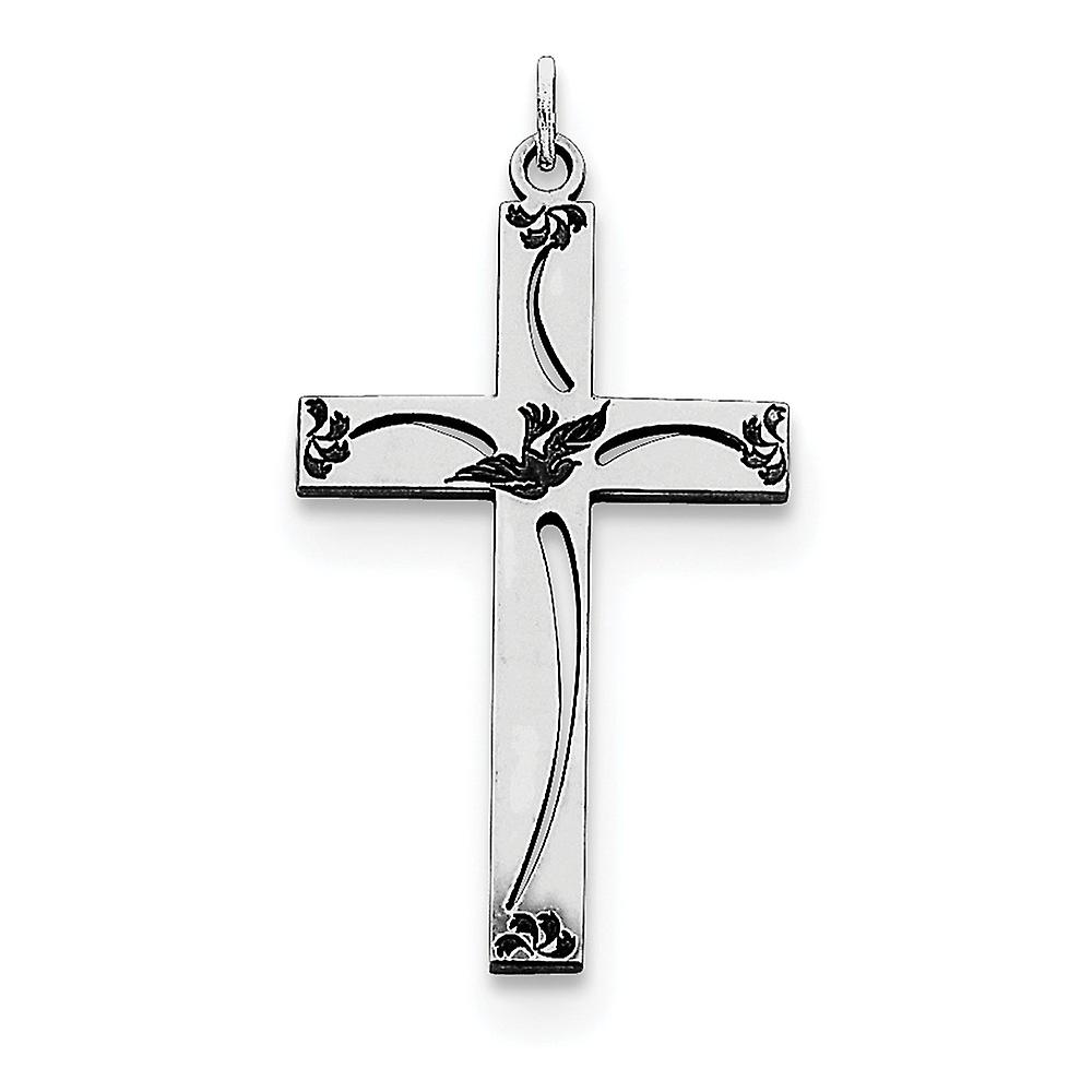 925 Sterling Silver Solid Polished Laser Etched-Laser Designed Religious Faith Cross Pendant Necklace 30x16mm Wide-Penda