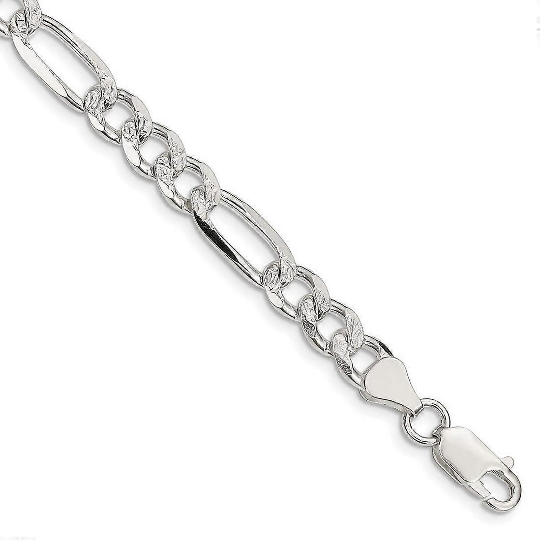 925 Sterling Silver Solid Polished 7.25mm Pave Flat Figaro Link Bracelet Lobster Claw-Link-Bracelet for Women - Length: