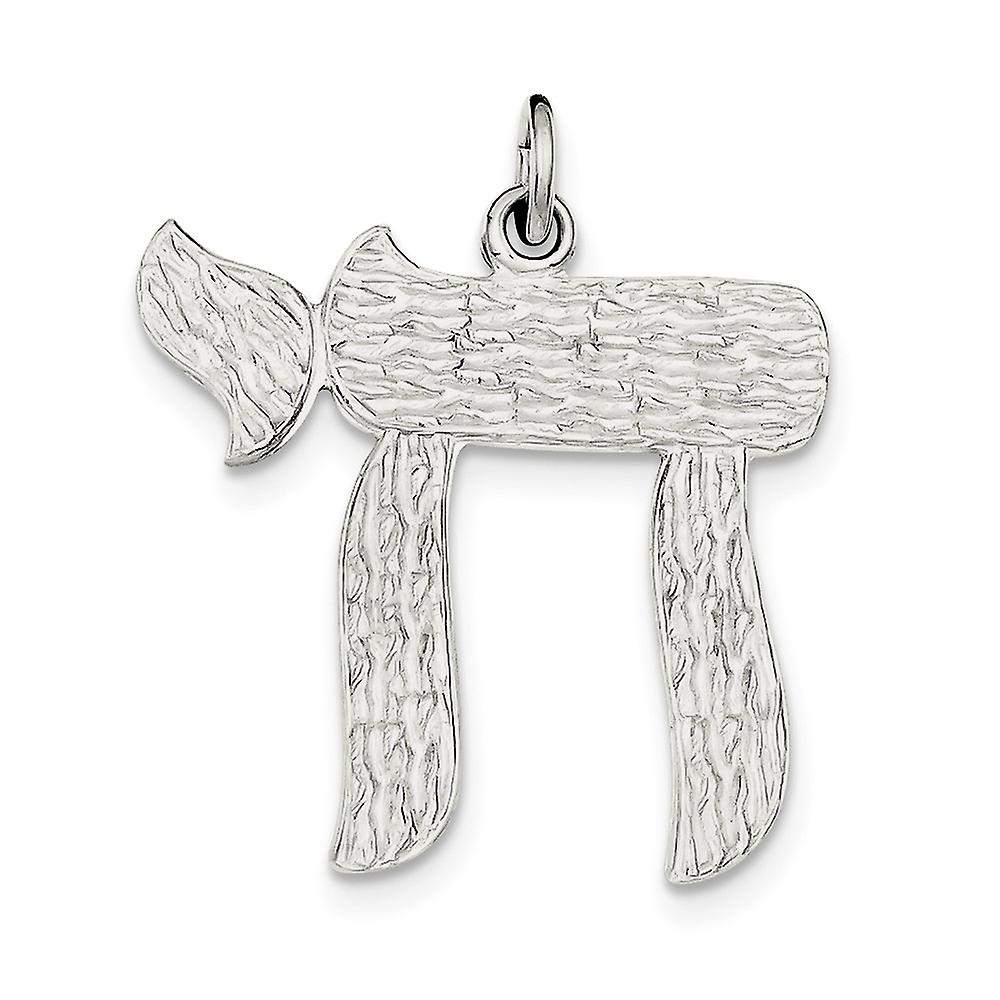 925 Sterling Silver Solid Not engraveable Polished and satin Chai Pendant Necklace 27x28mm Wide-Pendant for Women
