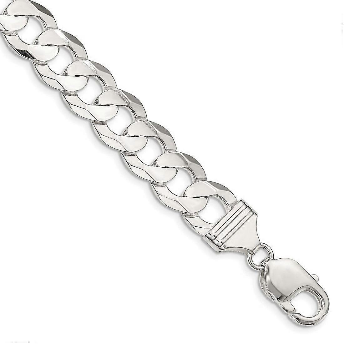 925 Sterling Silver Solid 11.9mm Concave Beveled Curb Chain Bracelet Link-Bracelet for Women and Men - Length: 7 to 9