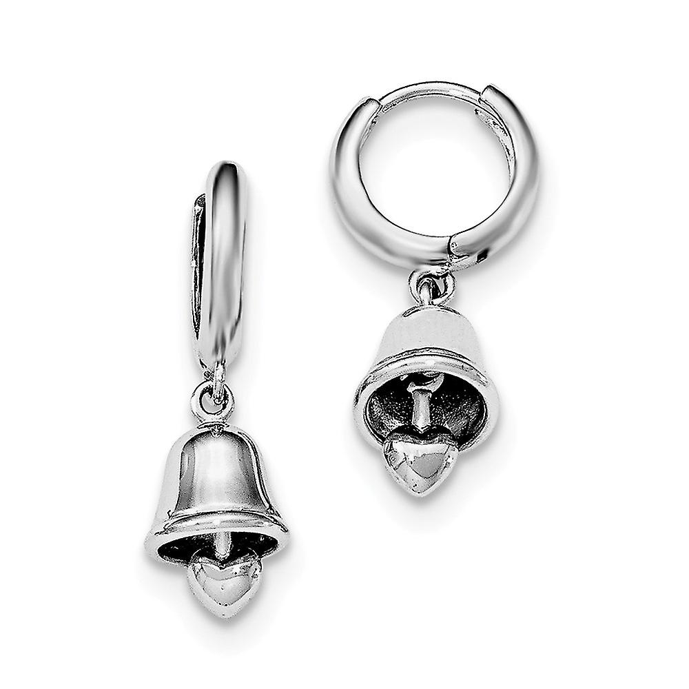Sterling Silver Polished Cubic Zirconia Bell Childrens Hinged Hoop Earrings - Measures 25x13mm Wide - in Sterling Silver - Product Attributes: - Dangle - - Thickness: 9 mm - Width of Item: 13 mm - Length of Item: 25 mm - Earring Closure: Post-Notch & Lock - Earring Type: Drop & Dangle - Finish: Polished - Feature: Hinged - Feature 2: Solid - - [ Potential Enhancement Methods: cubic zirconia ] - Synthetic. Some are covered with a product that makes the stone more durable. - [ Care and Handling: cubic zirconia ] - Clean with warm soapy water and a soft cloth. -
