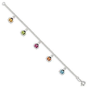 925 Sterling Silver Dangle Polished Lobster Claw Closure-Silver Enamel Ladybug Bracelet 6 Inch 8mm Wide Link-Bracelet