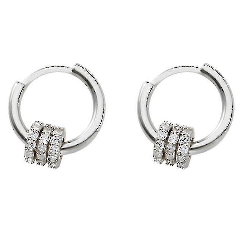 925 Sterling Silver Dainty Small Zircon Inlaid Round Circle Hoop Earrings For