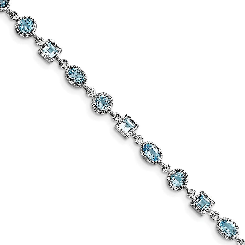 925 Sterling Silver Textured Polished Blue Topaz Bracelet 7 Inch Lobster Claw 6mm Wide Link-Bracelet for Women