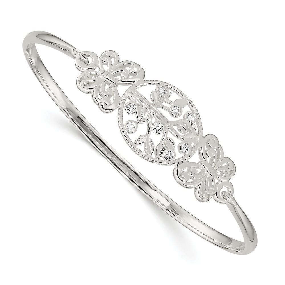 925 Sterling Silver Butterfly Angel Wings and Cubic Zirconia Tree Slip on Bangle Bracelet Cuff-Bracelet for Women