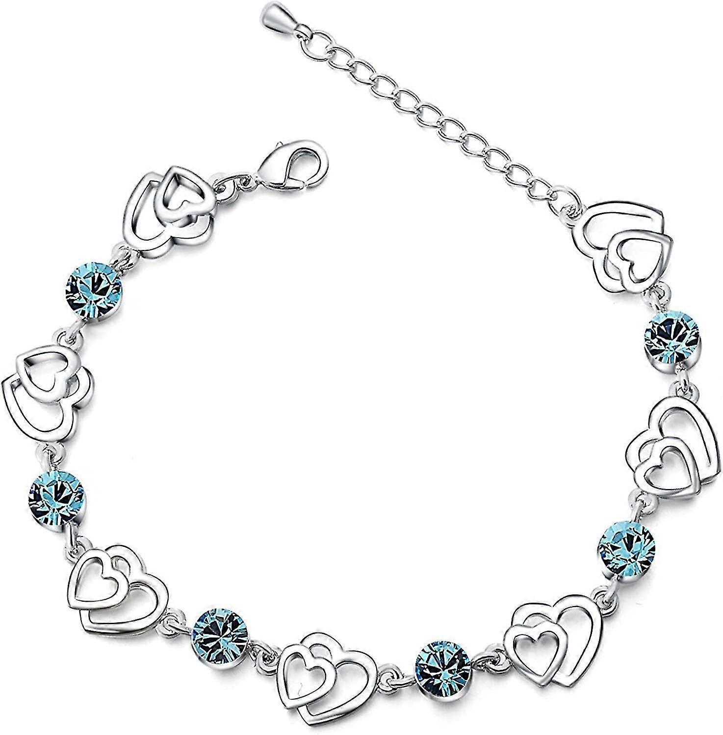 925 Sterling Silver Heart Bracelet Blue Crystal Love Forever Bracelets For Girls Gift
