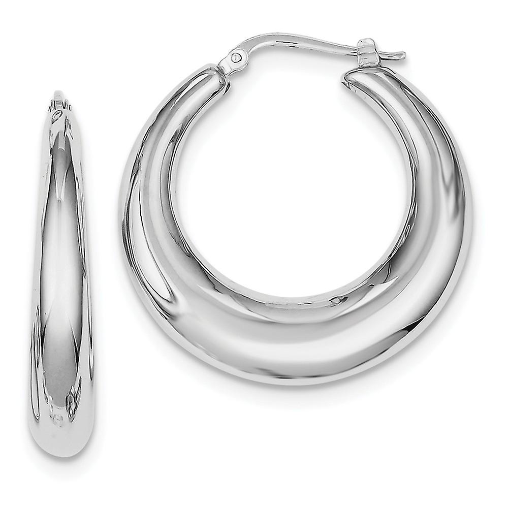 925 Sterling Silver Hinged post Polished Rhodium Plated Hollow Hoop Earrings 33x33mm Wide 6mm Thick-Hoop Earring for Wom