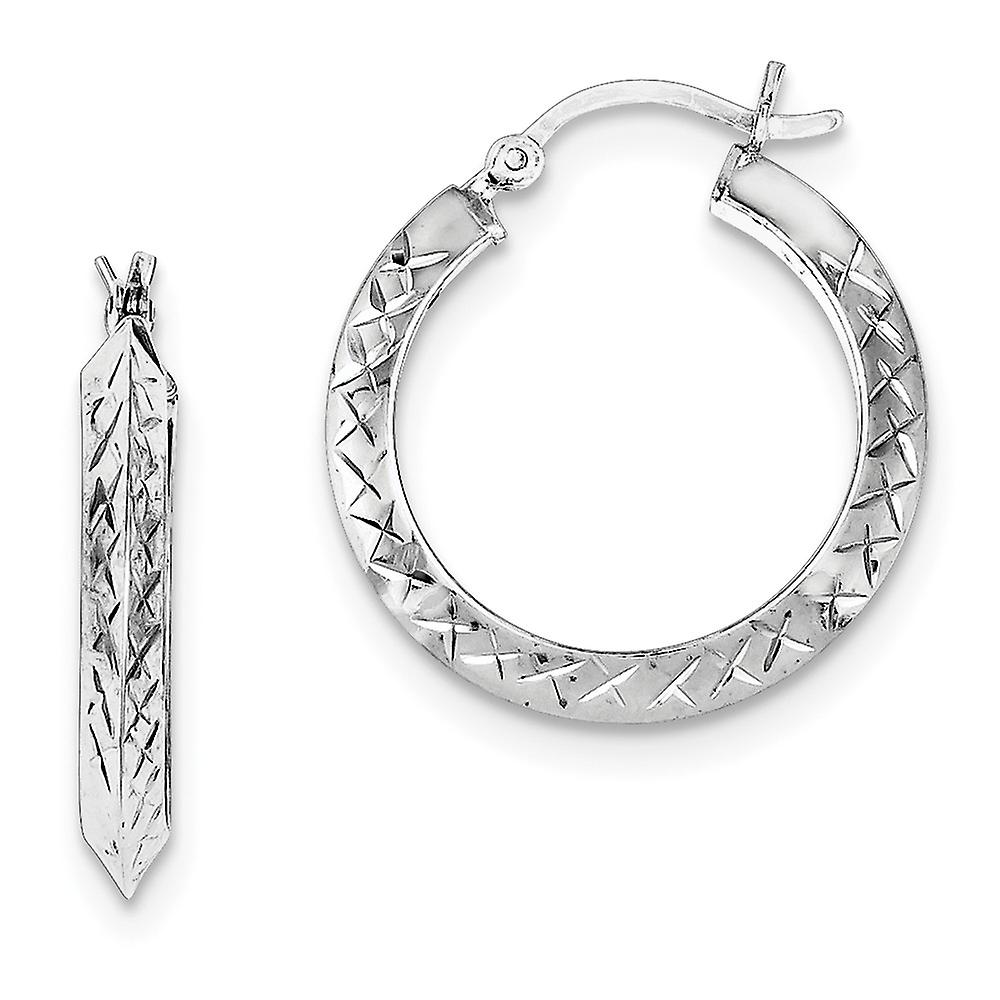 925 Sterling Silver Hinged Rhodium Plated Sparkle Cut Hoop Earrings 25x25mm Wide 3mm Thick-Hoop Earring for Women