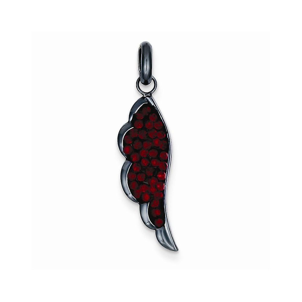 925 Sterling Silver Black Ceramic Red Crystal Wing Pendant Necklace 31x8mm Wide-Pendant for Women
