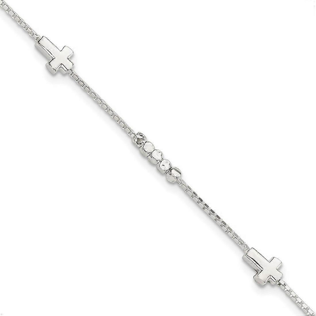 925 Sterling Silver Fancy Bead and Religious Faith Cross With 1 Inch Extension Bracelet 7 Inch Link-Bracelet for Women
