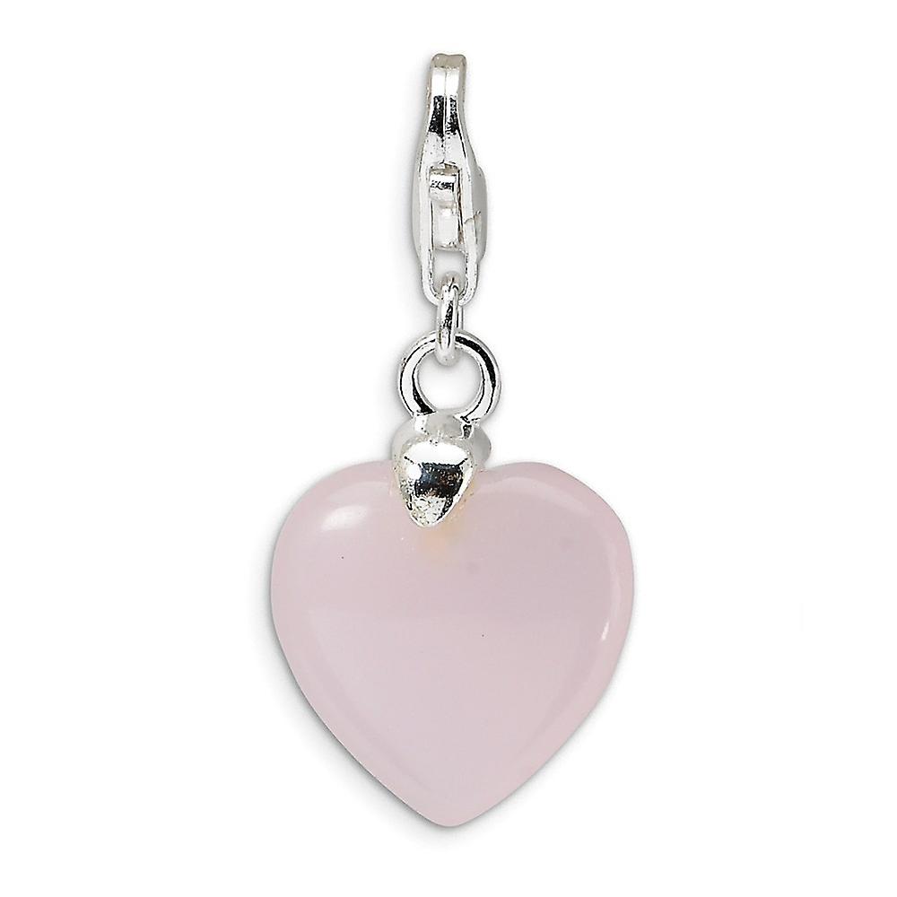 925 Sterling Silver Fancy Lobster Closure Rose Quartz Love Heart With-Lobster Clasp Charm 28x13mm Pendant Necklace for W
