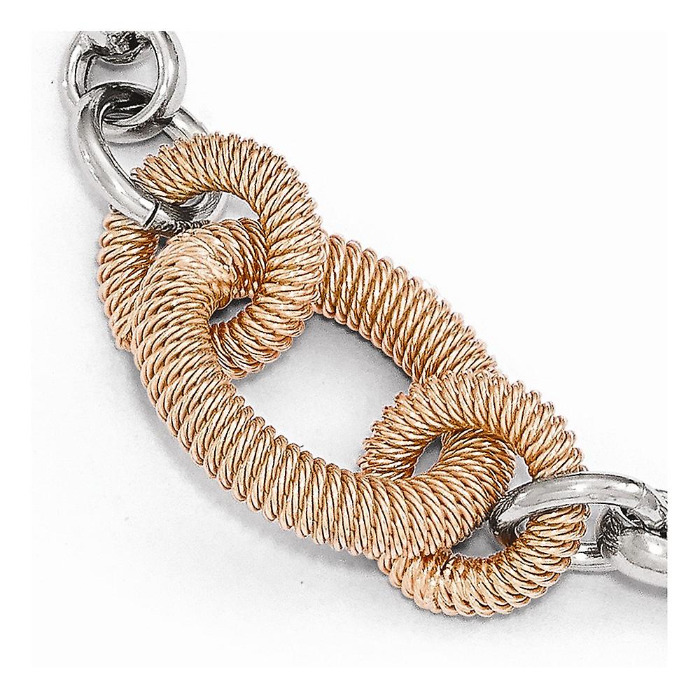 Sterling Silver Rose-tone Polished and Textured Link Bracelet - 7.5 Inch - Measures 16.6mm Wide - 13.2 Grams in Sterling Silver - Product Attributes: - Fancy Lobster Closure - - Charm/Element Width: 32.3 mm - Width of Item: 16.6 mm - Charm/Element Length: 16.6 mm - Length of Item: 7.5 in - Chain Length: 7.5 in - Chain Width: 6.6 mm - Clasp /Connector: Lobster (Fancy) - Finish: Polished - Chain Type: Rolo -