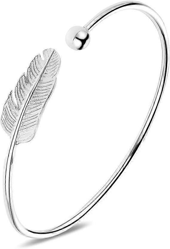 925 Sterling Silver Feather Bangle Bracelet Adjustable,Bracelet Bangle Jewelry Gift for Women Girls Ladies Birthday Valentine Graduation Gift