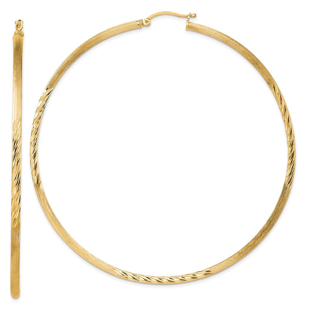 925 Sterling Silver Flash Gold Plated 2.5mm Polished Satin Diamond-Cut Hoop Earrings 82x79mm Wide 2.5mm Thick-Hoop Earri