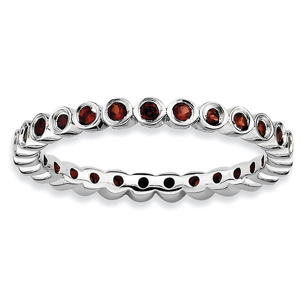 925 Sterling Silver Bezel Polished Patterned Stackable Garnet Ring-Stackable-Ring for Women - Ring Size: 5 to 10
