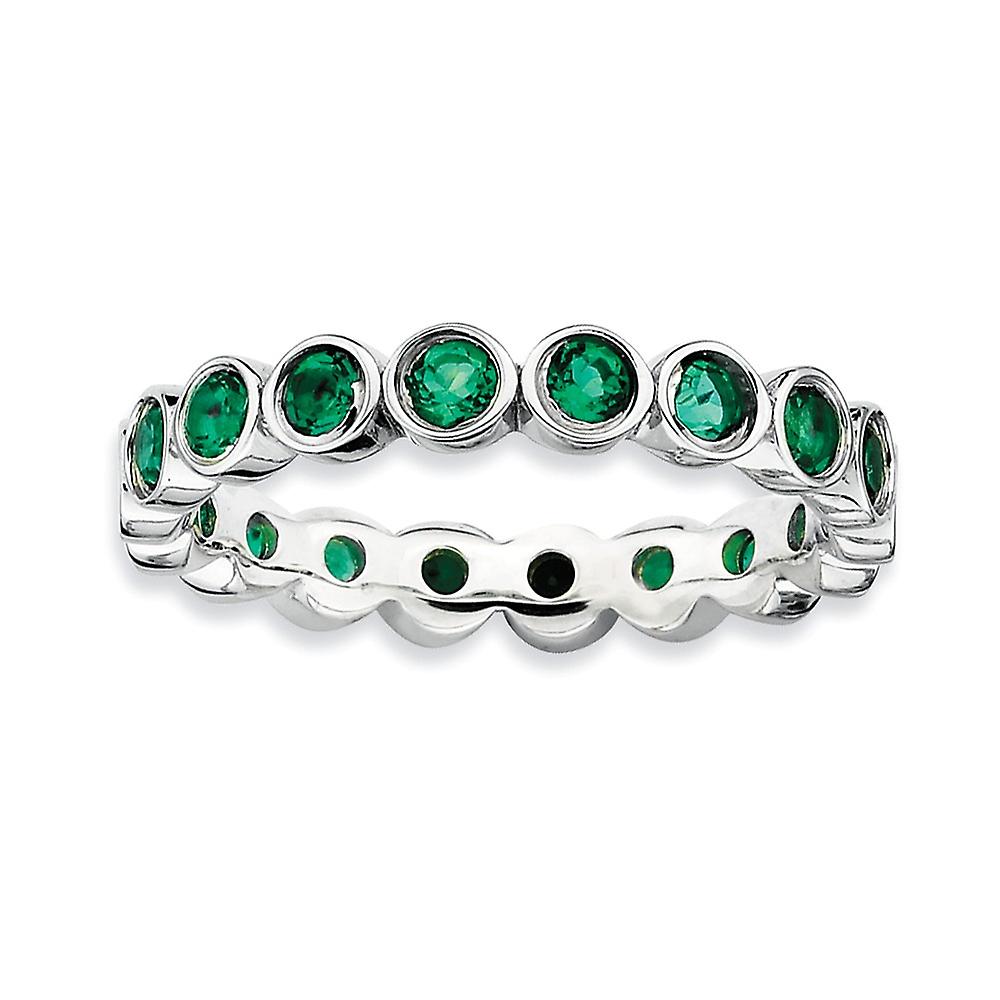 925 Sterling Silver Bezel Polished Patterned Stackable Created Emerald Ring-Stackable-Ring for Women - Ring Size: 5 to 1