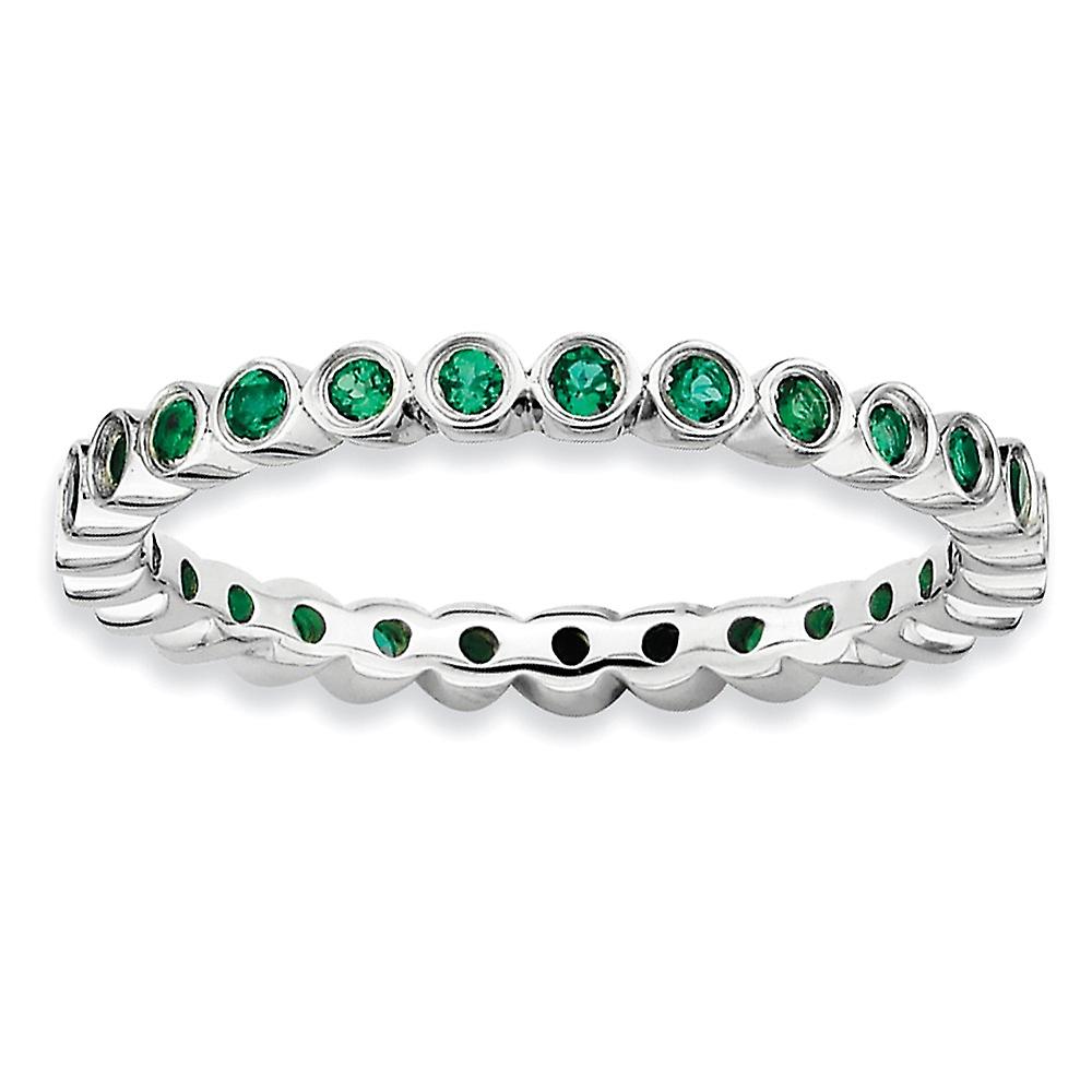 925 Sterling Silver Bezel Polished Patterned Stackable Created Emerald Ring-Stackable-Ring for Women - Ring Size: 5 to 1