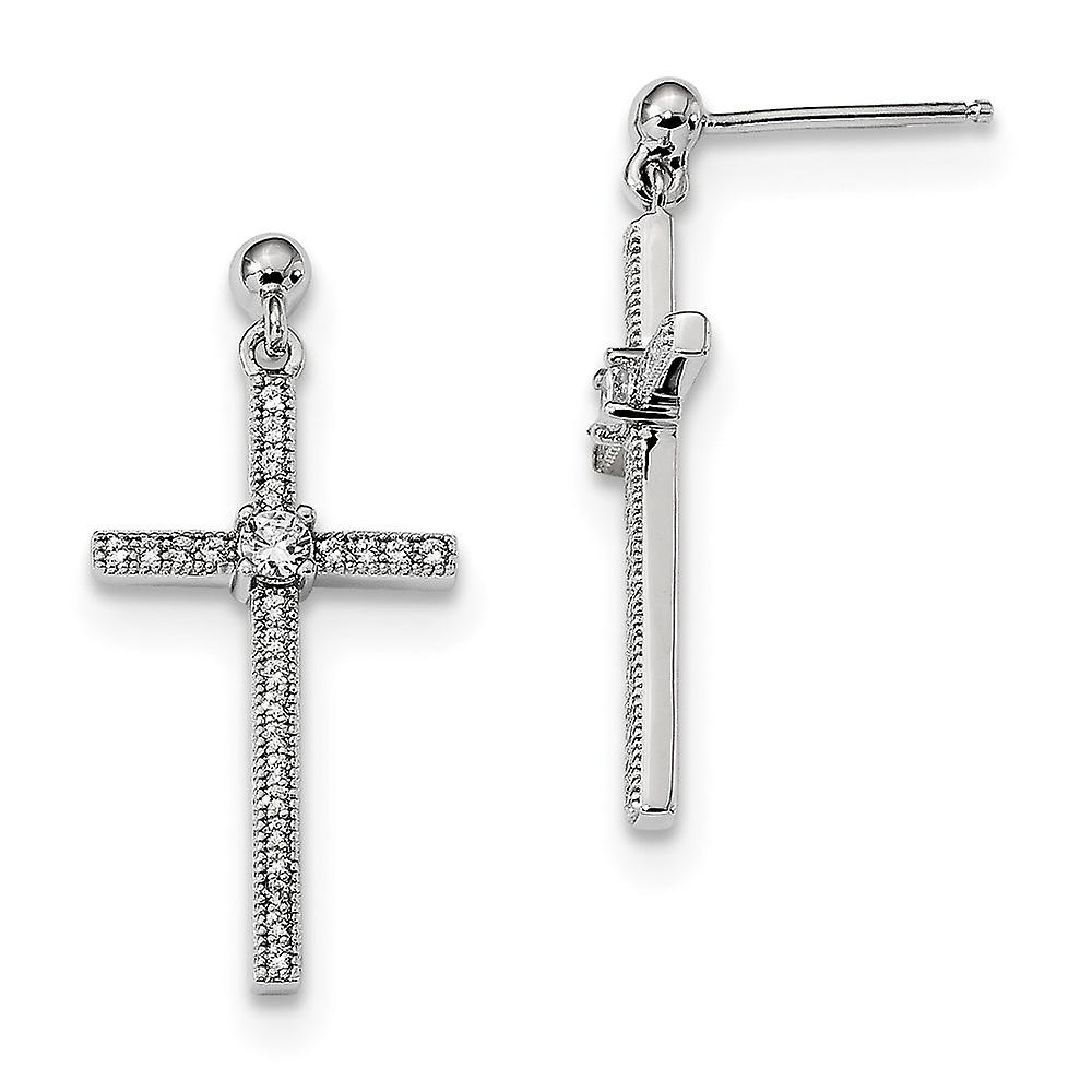 925 Sterling Silver Post and Cubic Zirconia Polished Religious Faith Cross Long Drop Dangle Earrings 26x13mm Wide-Dangle