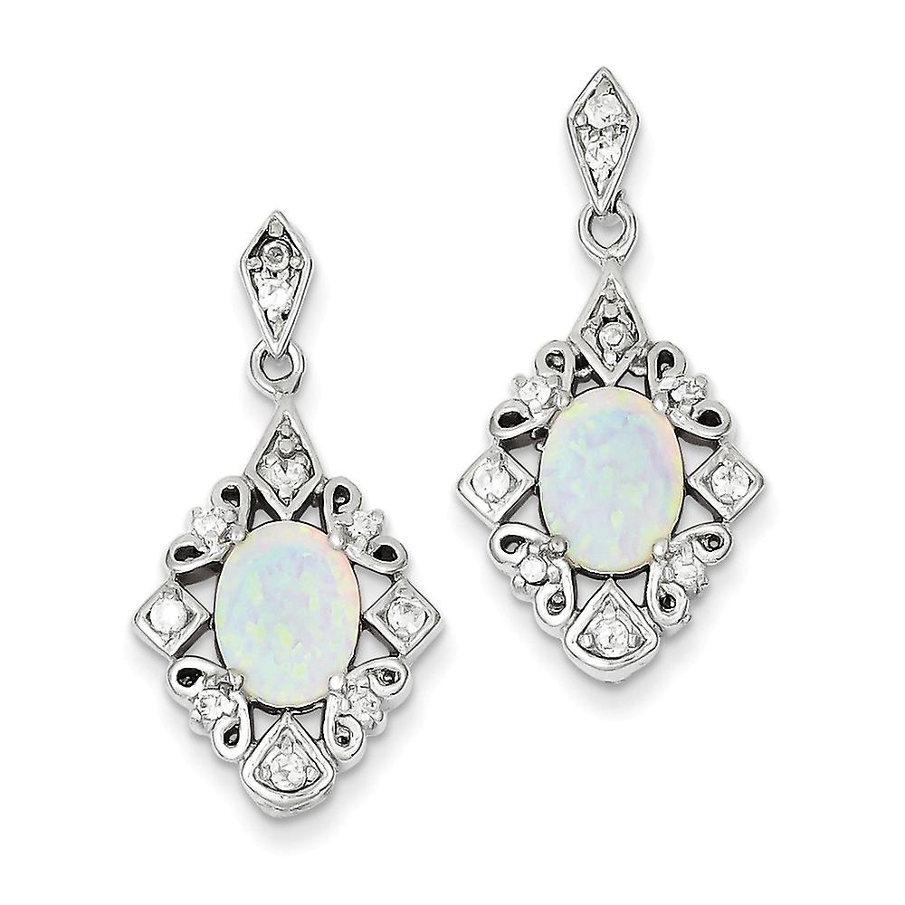 925 Sterling Silver Post Simulated Opal and Cubic Zirconia Earrings 30x15mm Wide Stud Earring for Women