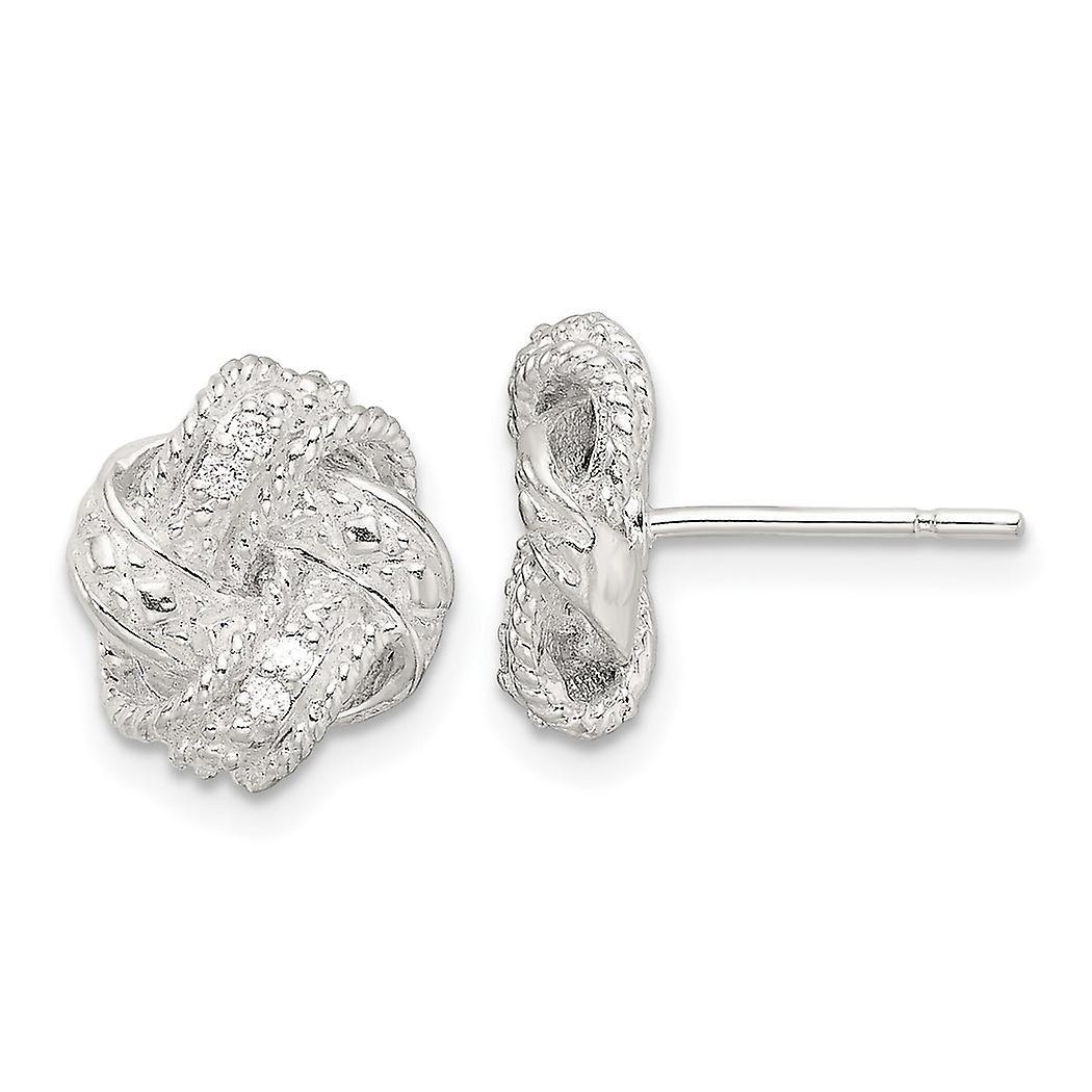 925 Sterling Silver Polished and Textured .04ct Diamond Love Knot Post Earrings 11.4x11.4mm Wide Stud Earring for Women
