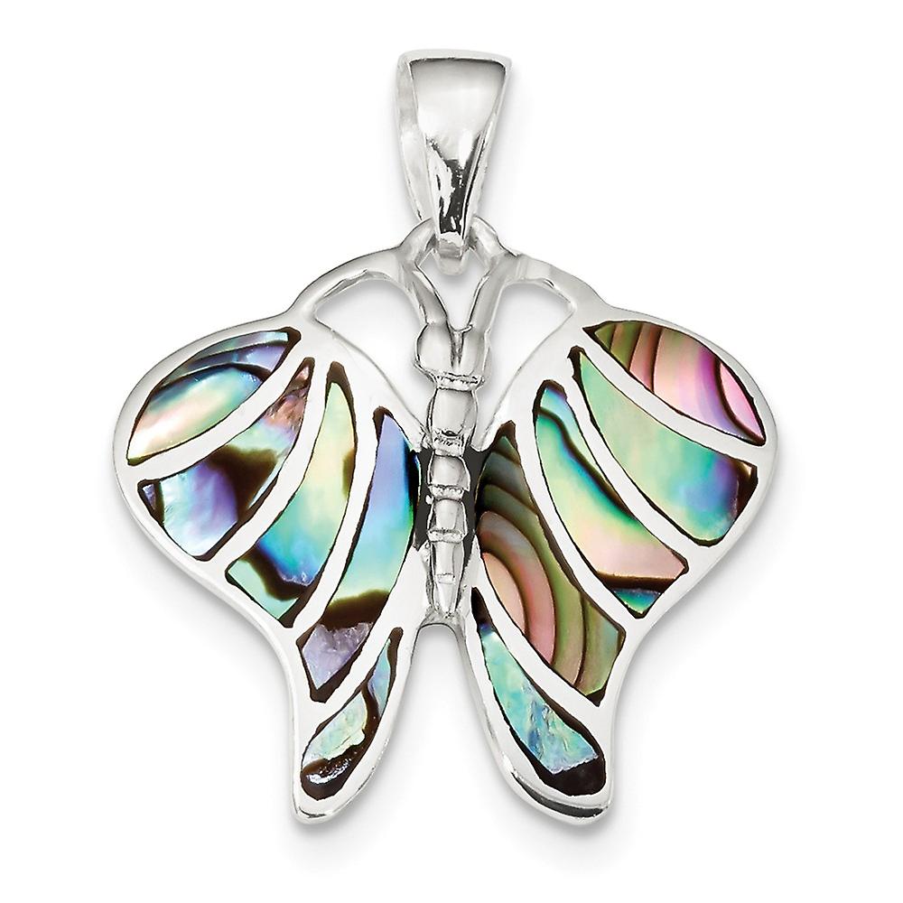 925 Sterling Silver Polished Abalone Butterfly Angel Wings Pendant Necklace 29x24mm Wide 4mm Thick-Pendant for Women