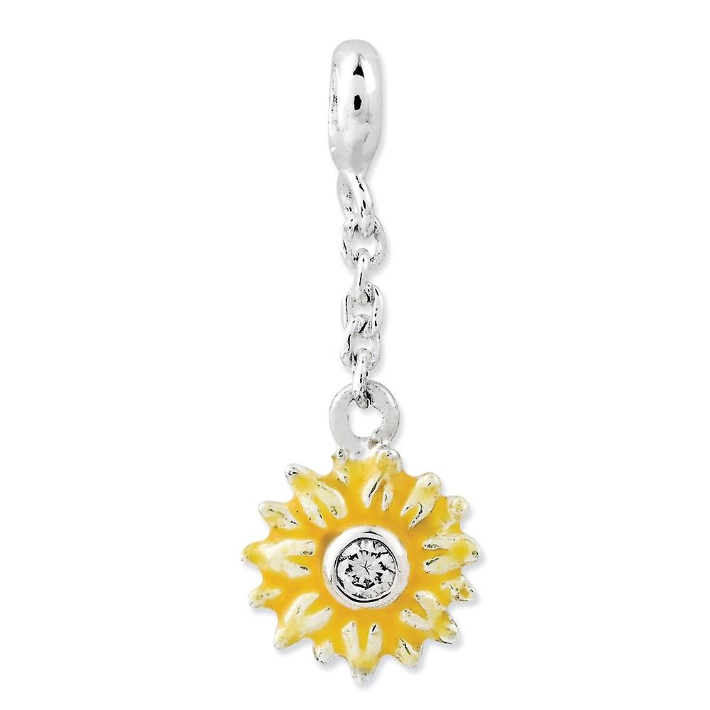 925 Sterling Silver Polished Yellow Enameled Flower With Cubic Zirconia 1/2inch Dangle Enhancer Charm 26x9mm Wide Pendan
