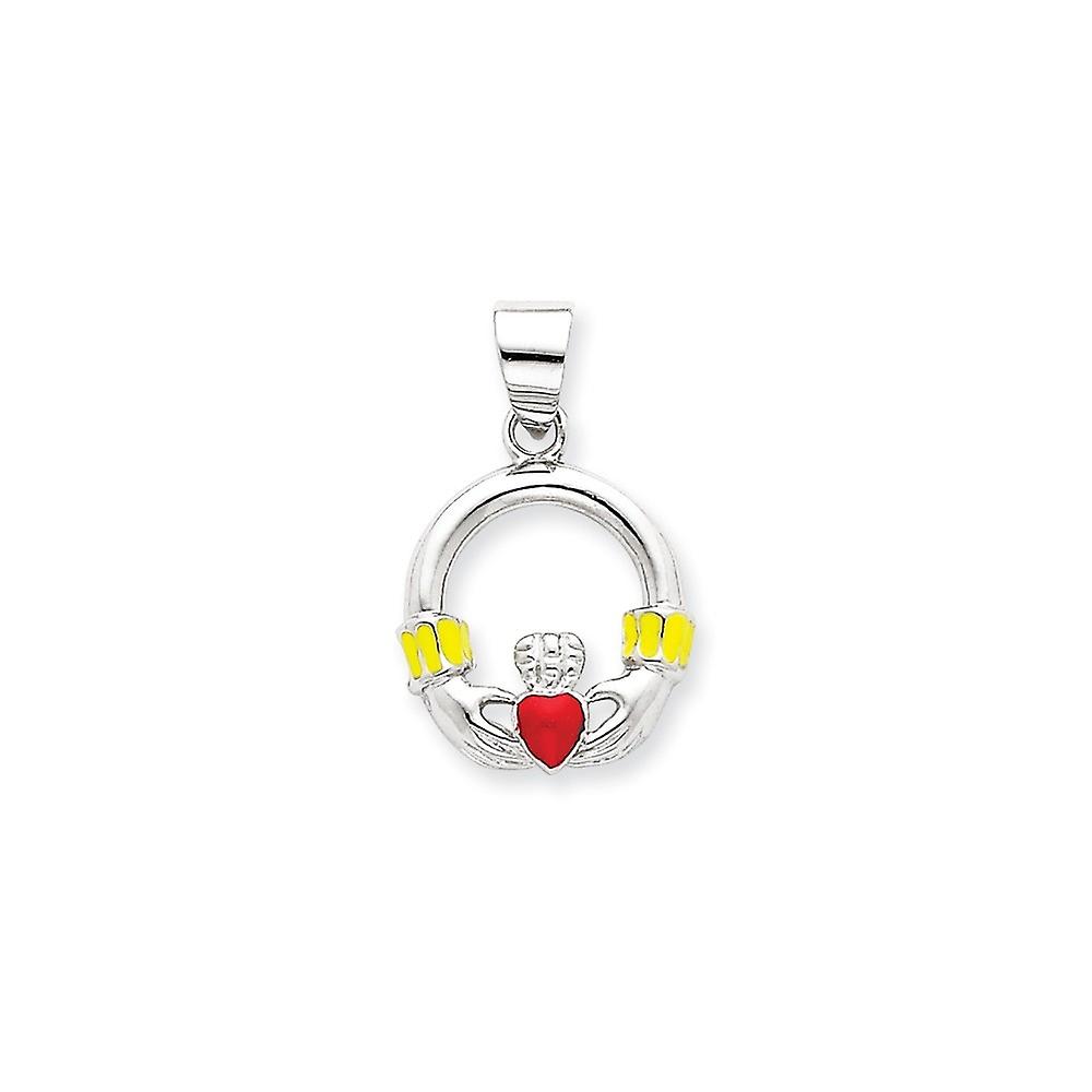 925 Sterling Silver Polished Enamel Irish Claddagh Celtic Trinity Knot Pendant Necklace 26.8x16mm Wide-Pendant for Women