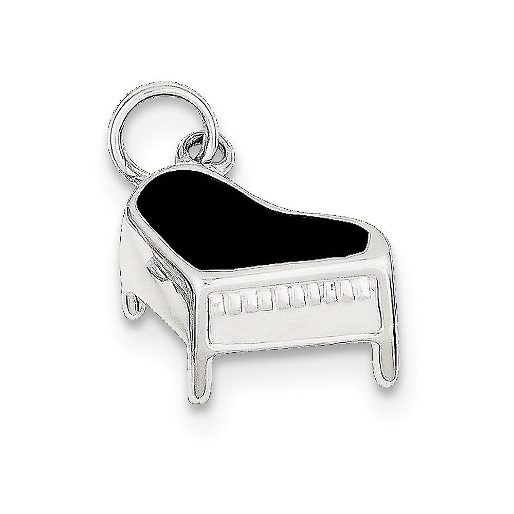 925 Sterling Silver Polished Enameled Piano Charm 15x16mm Wide Pendant Necklace for Women
