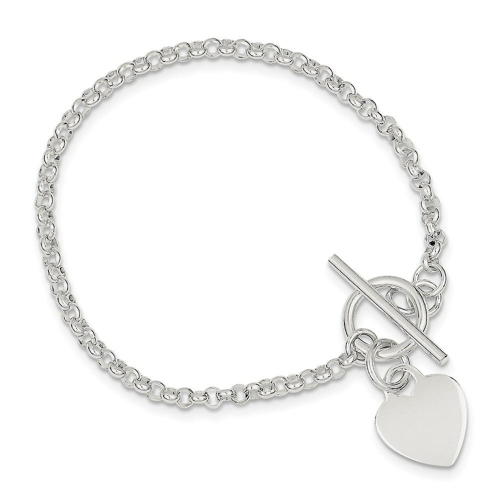 925 Sterling Silver Polished Engravable (front only) Fancy Love Heart Bracelet 7.5 Inch Toggle 11mm Wide Link-Bracelet f