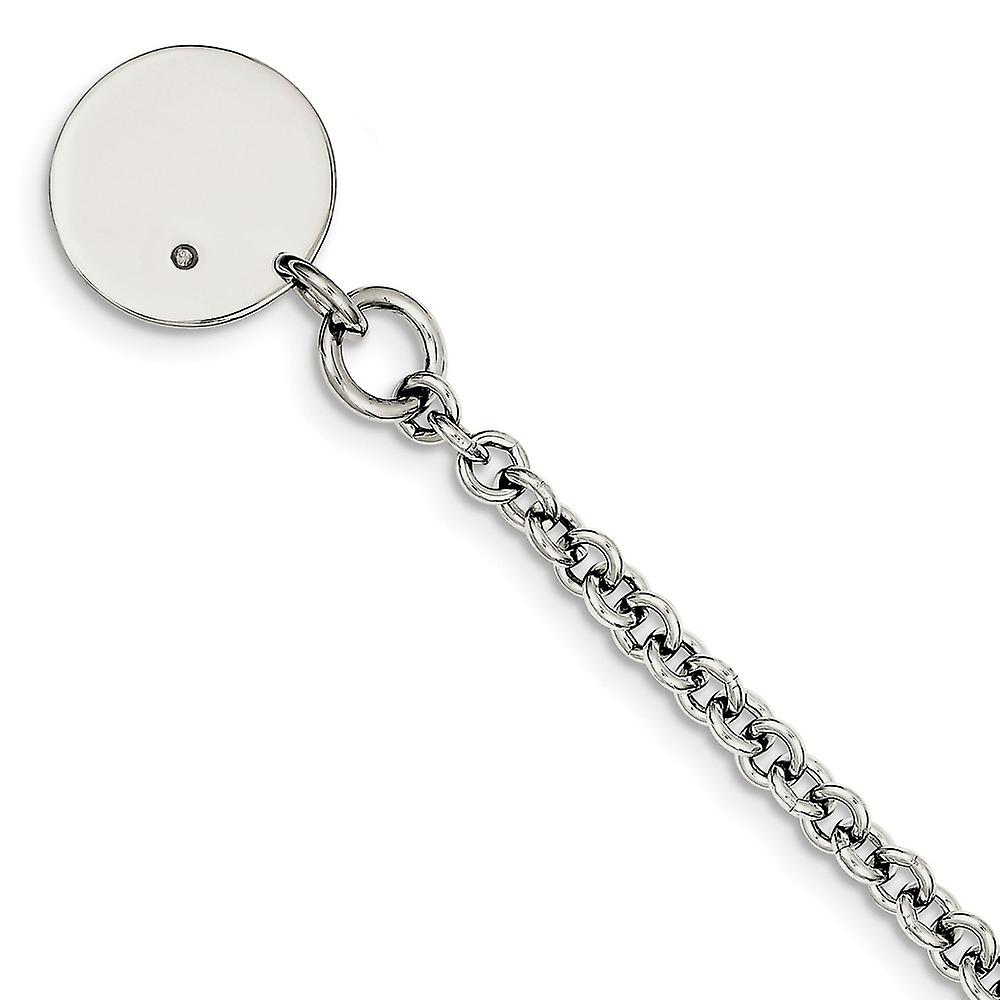 925 Sterling Silver Polished Engravable (front only) .04ct Diamond Disc Bracelet 7.5 Inch 0.027mm Toggle Link-Bracelet f