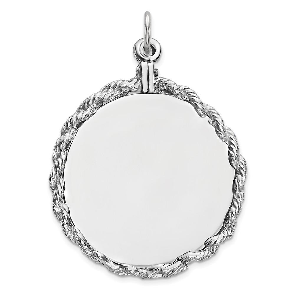 925 Sterling Silver Polished Engraveable Round with Rope Disc Charm 37x26mm Wide Pendant Necklace for Women