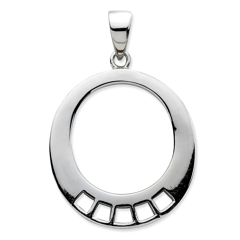 925 Sterling Silver Polished Oval Shaped Charm Carrier Pendant Necklace 33x22mm-Pendant for Women