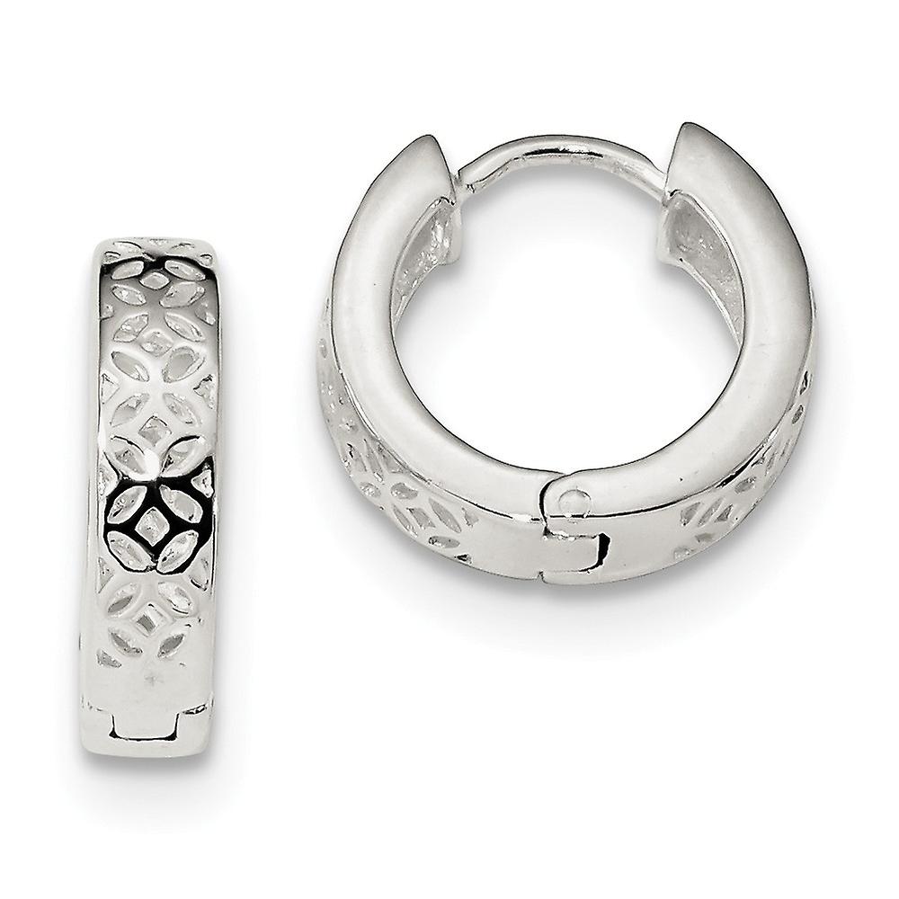 925 Sterling Silver Polished Cut out Design Hinged Hoop Earrings 15.3x16.2mm Wide 3.2mm Thick-Hoop Earring for Women