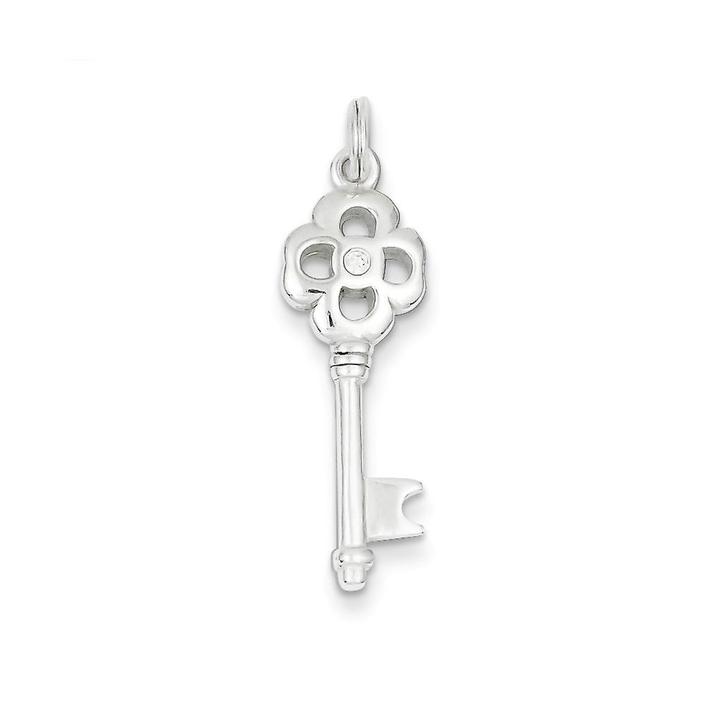 925 Sterling Silver Polished Cubic Zirconia Key Pendant Necklace 31.25x9.2mm Wide-Pendant for Women