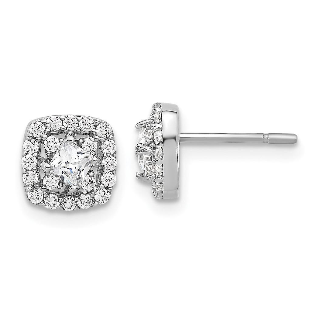 Sterling Silver Polished Cubic Zirconia Square Center Post Earrings - Measures 7.6x7.6mm Wide - 1.5 Grams In Sterling Silver - - Width of Item: 7.6 mm - Length of Item: 7.6 mm - Earring Closure: Post & Push Back - Earring Type: Button - Finish: Polished - Feature: Hollow - - [ Potential Enhancement Methods: cubic zirconia ] - Synthetic. Some are covered with a product that makes the stone more durable. - [ Care and Handling: cubic zirconia ] - Clean with warm soapy water and a soft cloth. -