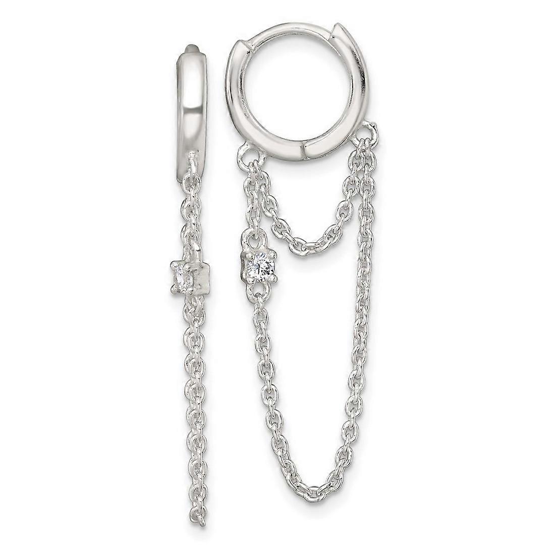 925 Sterling Silver Polished Cubic Zirconia Dangling Chain Hinged Round Hoop Earrings 40.32x2.4mm Wide-Hoop Earring for
