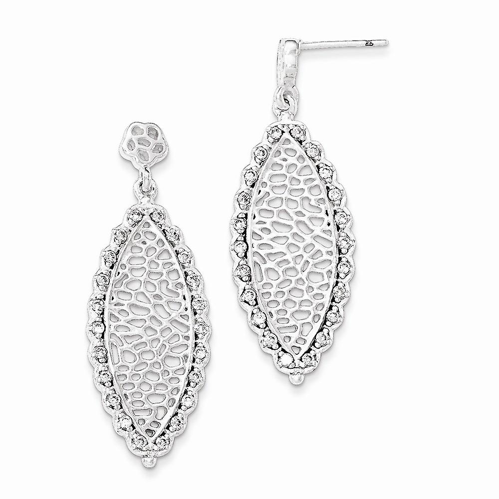 Sterling Silver Polished Cubic Zirconia Dangle Post Earrings - Measures 40x15mm Wide - in Sterling Silver - - Width of Item: 13.5 mm - Length of Item: 38 mm - Earring Closure: Post & Push Back - Earring Type: Drop & Dangle - Finish: Polished - - [ Potential Enhancement Methods: cubic zirconia ] - Synthetic. Some are covered with a product that makes the stone more durable. - [ Care and Handling: cubic zirconia ] - Clean with warm soapy water and a soft cloth. -