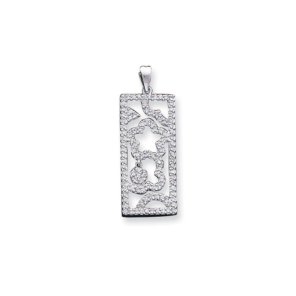 925 Sterling Silver Polished Cubic Zirconia Fancy Pendant Necklace 42.1x15.5mm Wide-Pendant for Women