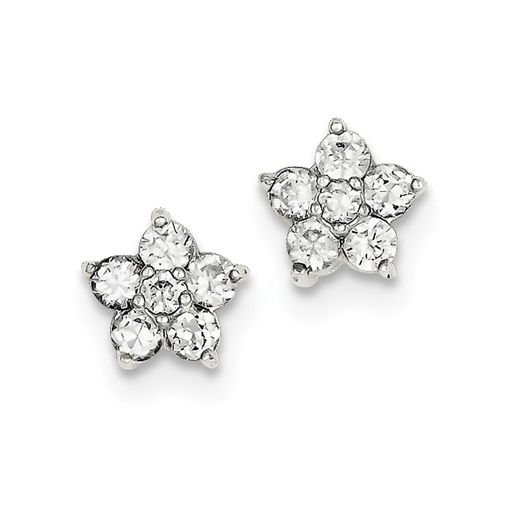925 Sterling Silver Polished Cubic Zirconia Flower Post Earrings 10x10mm Wide Stud Earring for Women