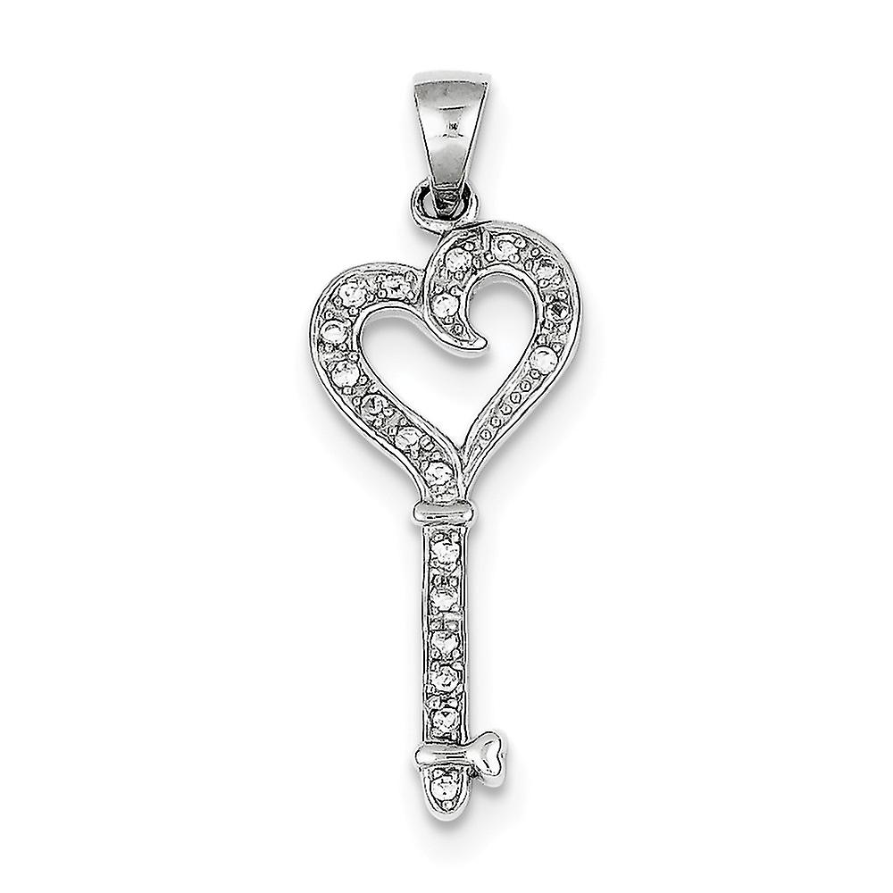 925 Sterling Silver Polished Cubic Zirconia Love Heart Key Pendant Necklace 39x14mm Wide-Pendant for Women
