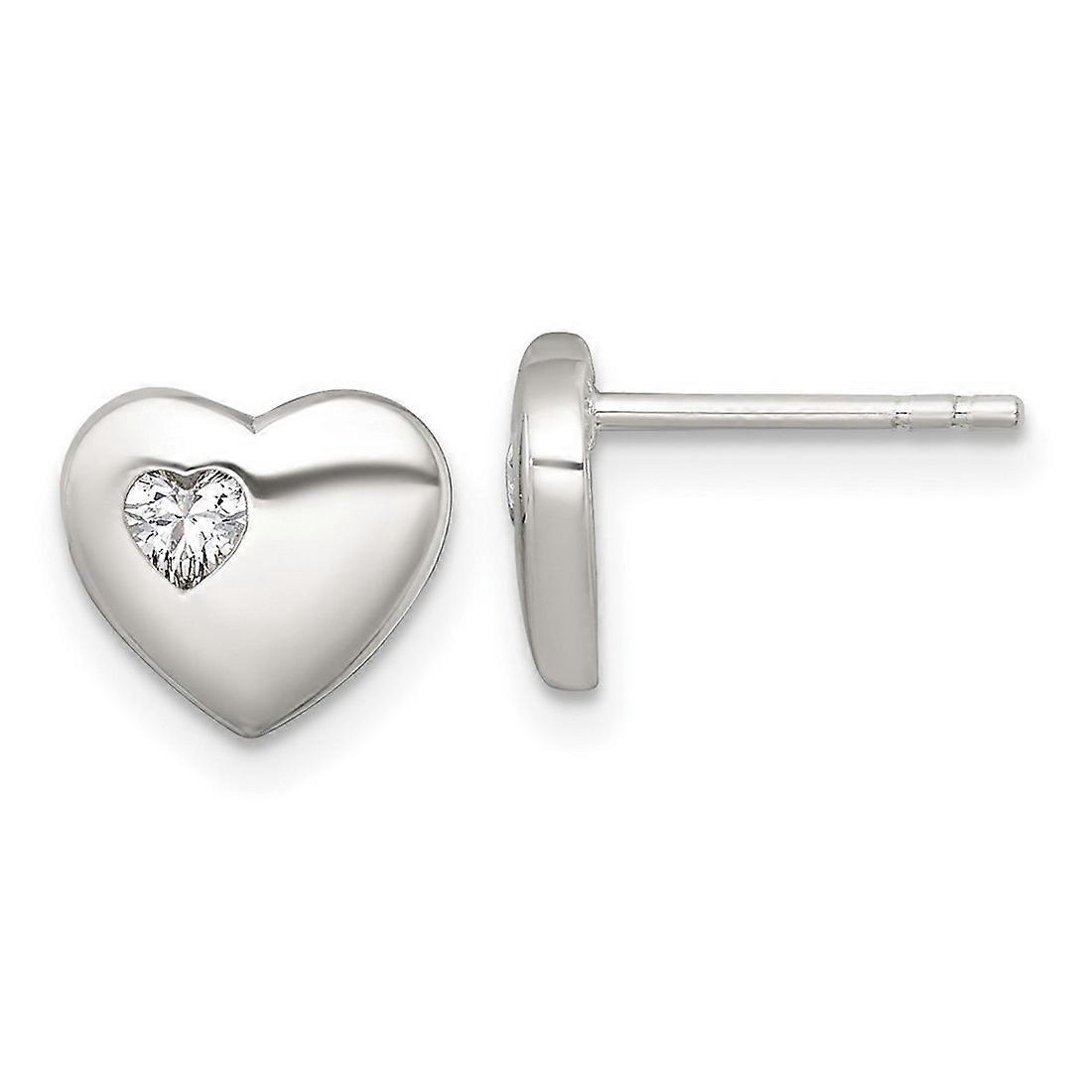 925 Sterling Silver Polished Cubic Zirconia Love Heart Post Earrings 8.5x9.7mm Wide Stud Earring for Women