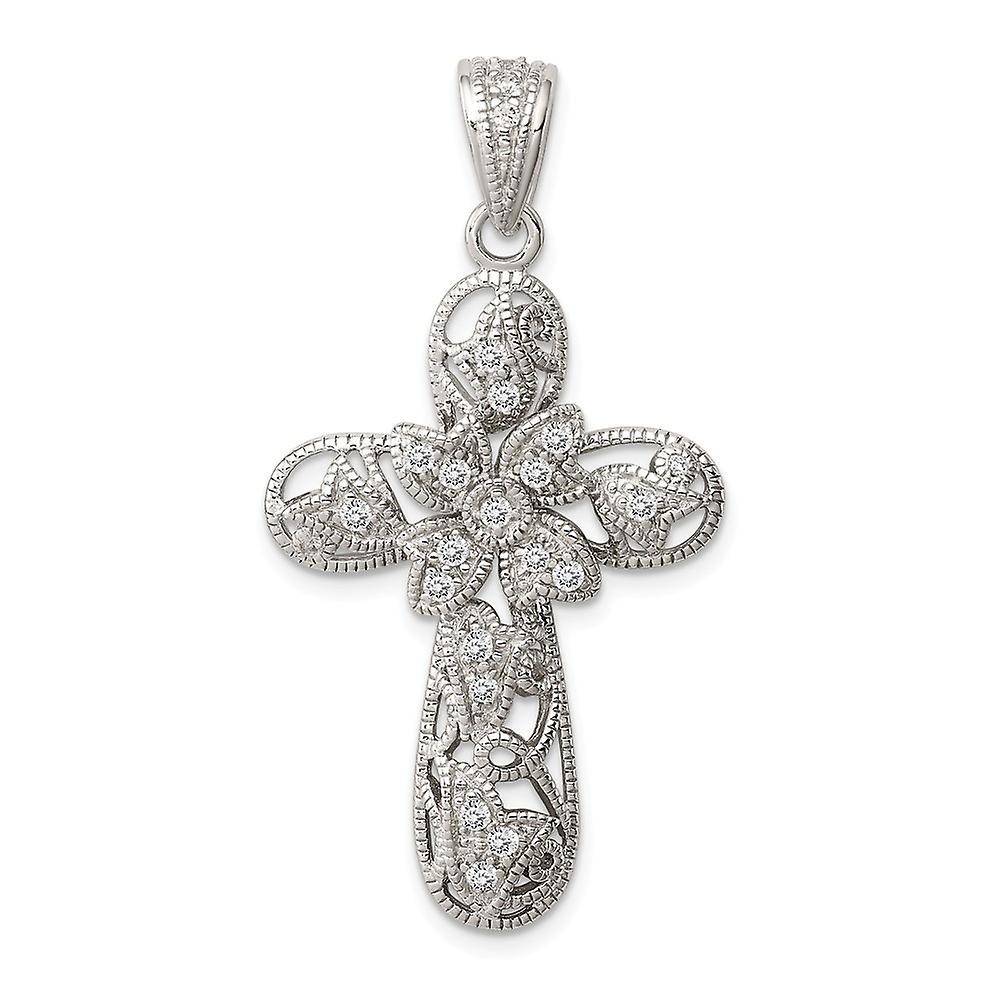 925 Sterling Silver Polished Cubic Zirconia Religious Faith Cross Pendant Necklace 42x33mm Wide-Pendant for Women