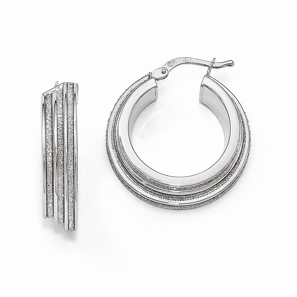 925 Sterling Silver Polished Glitter Infused Hinged Hoop Earrings 25.4x24mm Wide 6mm Thick-Hoop Earring for Women