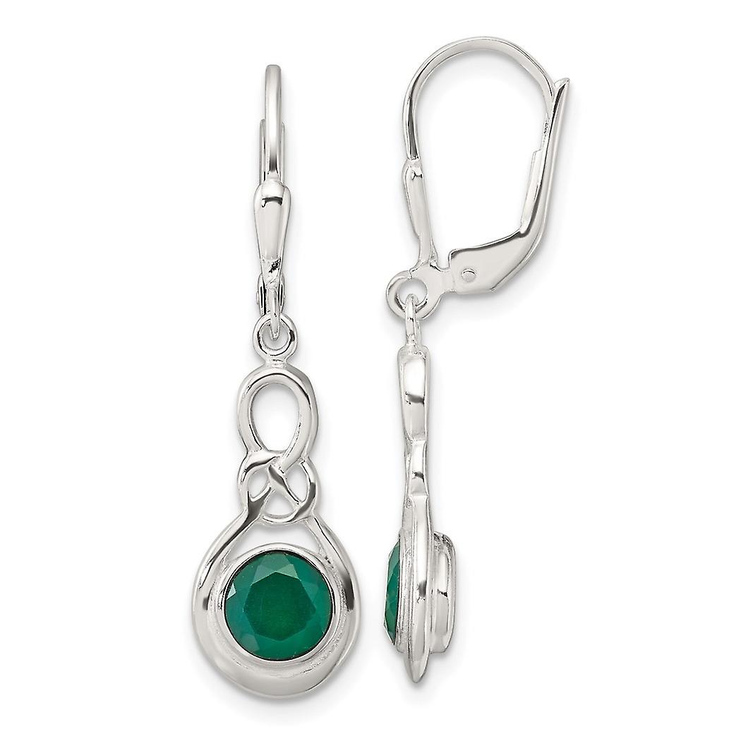 925 Sterling Silver Polished Green Simulated Onyx Knot Leverback Long Drop Dangle Earrings 36x9.65mm Wide-Dangle Earring