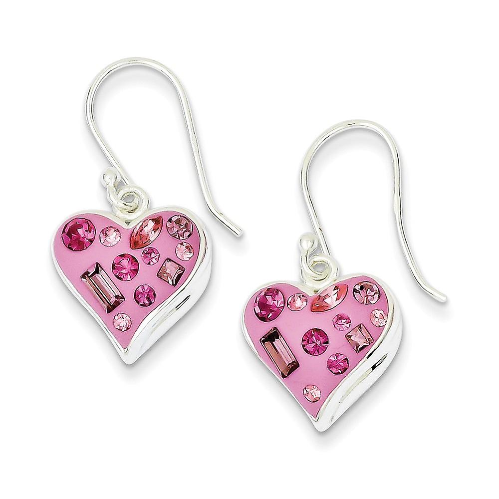 925 Sterling Silver Polished Shepherd hook Crystal Accented Pink Love Heart Long Drop Dangle Earrings 27x14mm Wide-Dangl