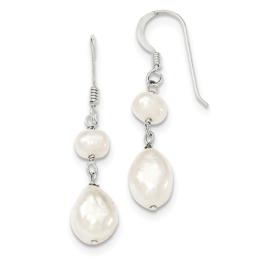 925 Sterling Silver Polished Shepherd hook White Freshwater Cultured Pearl Earrings 40x10mm Wide Dangle Earring for Wome