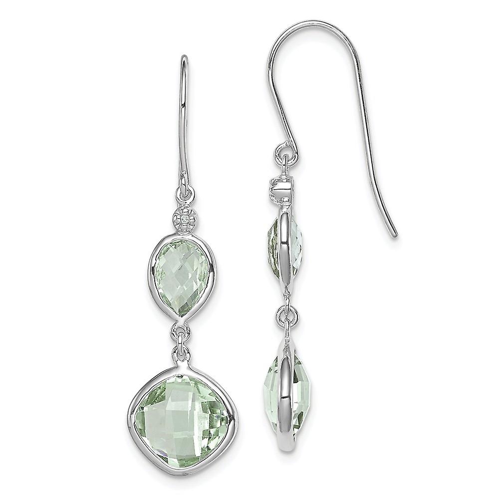 925 Sterling Silver Polished Shepherd hook Rhodium Plated Diamond Green Quartz Earrings 39x10mm Wide Dangle Earring for