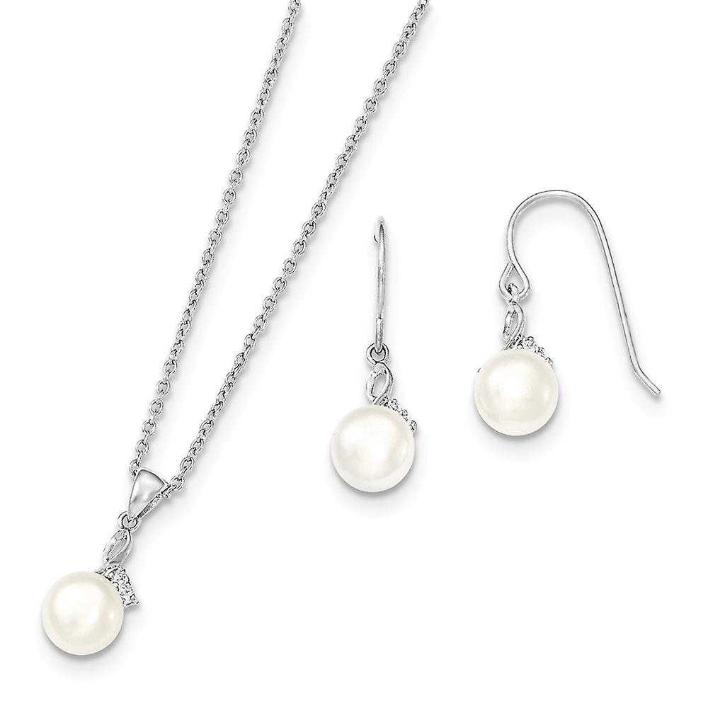 925 Sterling Silver Polished Shepherd hook Lobster Claw Closure 7 8mm White Freshwater Cultured Pearl Cubic Zirconia Nec