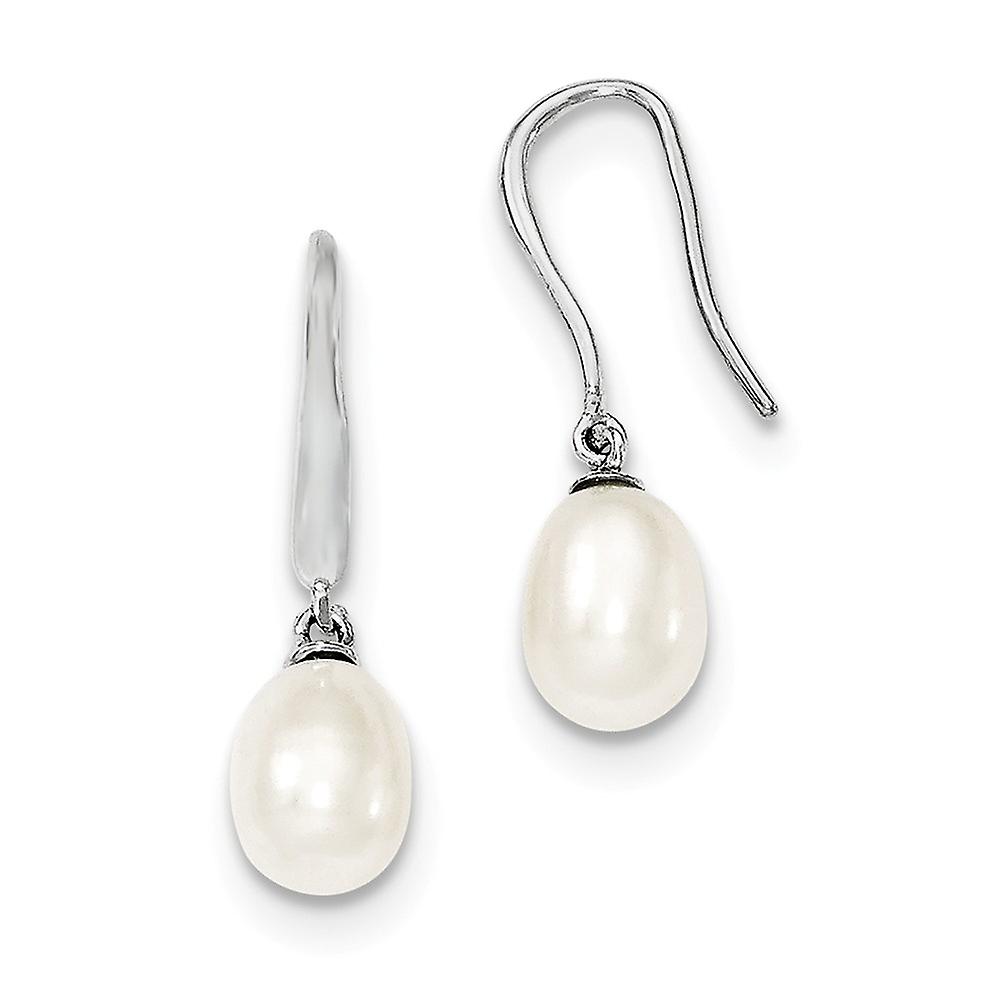 925 Sterling Silver Polished Shepherd hook Freshwater Cultured Pearl Long Drop Dangle Earrings 26x7mm Wide-Dangle Earrin