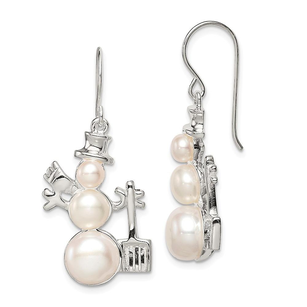 925 Sterling Silver Polished Shepherd hook Freshwater Cultured Pearl Snowman Earrings 40x22mm Wide Dangle Earring for Wo